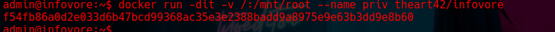 docker run -dit -v /:/mnt/root --name priv theart42/infovore