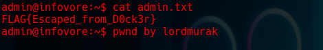 Conclusion The Infovore-1 machine provided a comprehensive environment to practice and understand various penetration testing phases. From initial reconnaissance and enumeration to exploiting vulnerabilities and escalating privileges, each step reinforced essential skills required for ethical hacking and security assessments.