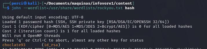 The script provides us with the hash, allowing us to apply brute force. We will proceed using John the Ripper (john).