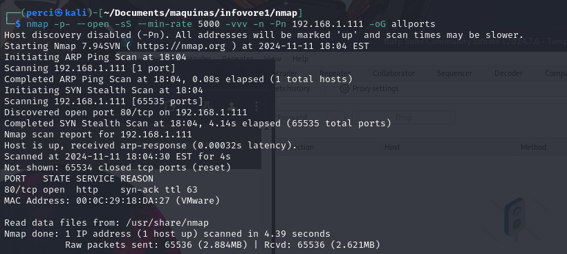 nmap -p- --open -sS --min-rate 5000 -vvv -n -Pn 192.168.1.111 -oG allports