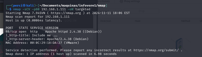 nmap -sCV -p80 192.168.1.111 -oN targeted