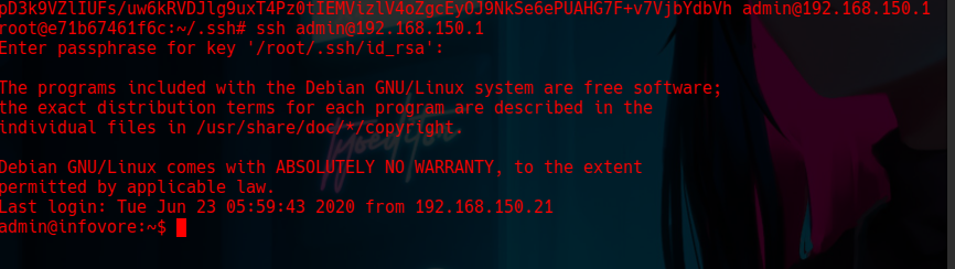 We found SSH public keys, and the root user can authenticate without a password as the admin user to the victim machine’s IP address.